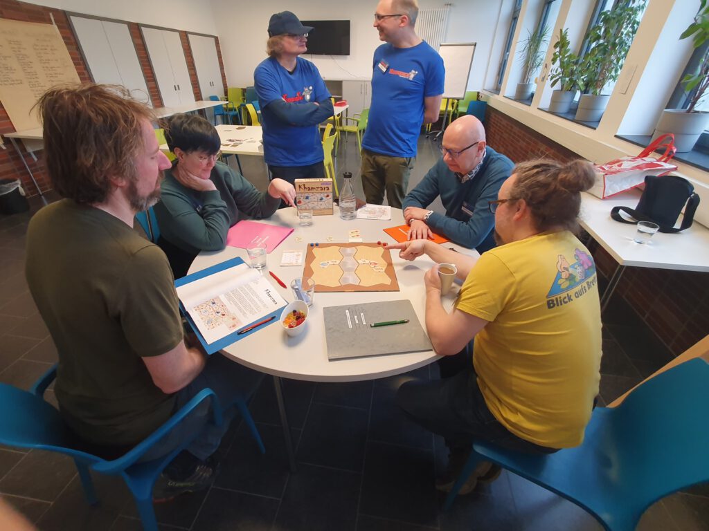 Second place went to the two-player game “Khamzara” by Wolfgang Dirscherl and Wolfgang Lehmann. Third place was taken by Patricia Limberger and Felix Leder with their game “Xterminators”. Congratulations to all the winners!