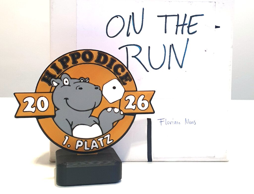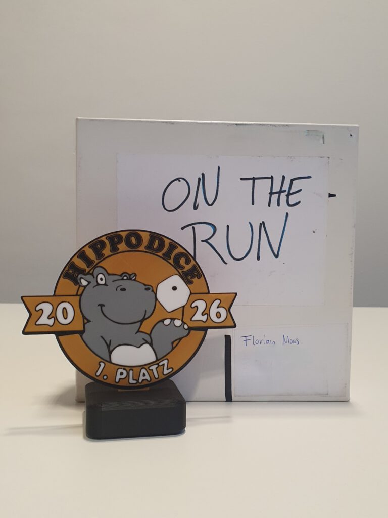 We congratulate the winner of 2026: In this year’s Hippodice Competition, a board game design competition, Florian Maas secured first place with his trick-taking game “On the run!”. In the 36th edition of our competition, he prevailed in a multi-stage process against more than 320 entries from a total of 36 countries.